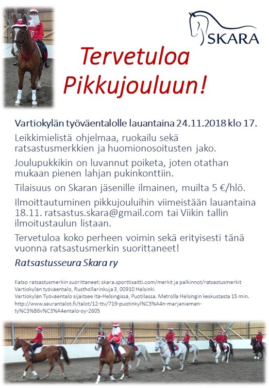 Skaran pikkujoulu tulee taas! Tulethan sinäkin lauantaina 24.11.2018 klo 17 alkaen. Kutsu lähetetty jäsenille myös sähköpostina. Muistathan ilmoittutua.